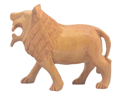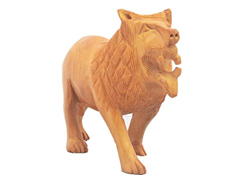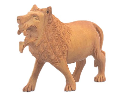 Javi 3 Inch Wooden Lion Sculpture / Statue / Model - Table Top Collectable Centrepiece | Good Luck Charm and Feng Shui Item / Centrepiece / Home & Table Decor (Lion 3 Inch)