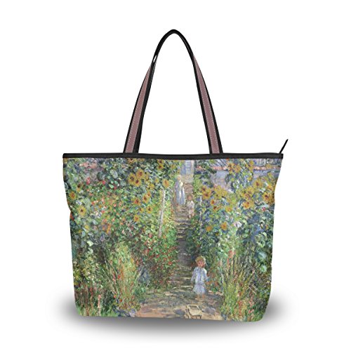 Women Large Tote Top Handle Shoulder Bags Monet's Garden Ladies Handbag