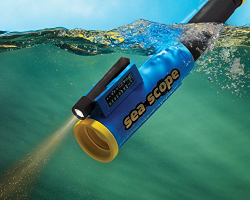 This 4x telescope is great for viewing distant objects on land, or attach it to the water-resistant SeaScope to magnify life in streams, ponds, lakes or tidepools. The Aqualite flashlight attaches to the SeaScope for viewing in dark or murky underwater conditions. A built-in ruler allows on-the-spot measurement of specimens, and a thermometer strip determines the temperature in or out of the water. Requires two AA batteries, not included.