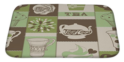 Gear New No Slip Microfiber Memory Foam Retro Tea & Cupcake Pattern Bath Rug Mat, 34" X 21"