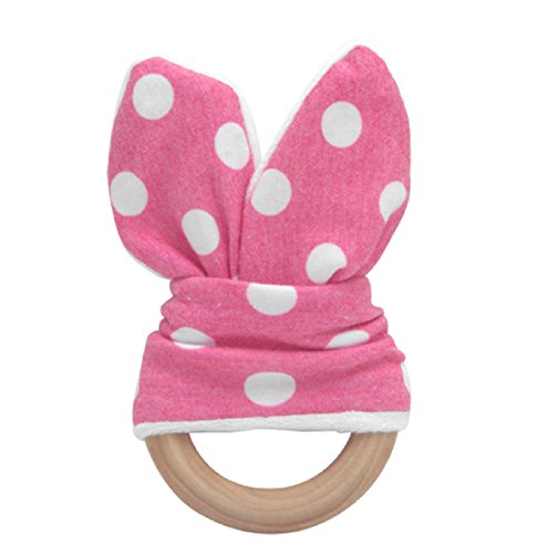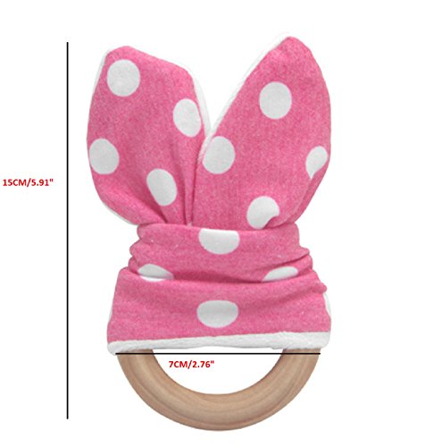 Hot Sale! Natural Teething Ring Teether Cute Baby Safety Handmade Wooden Bunny Sensory Toy