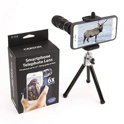 The HookUpz Universal Smartphone Adapter with 6x18mm telephoto lens monocular and adjustable mini-tripod (IC-918) from Carson is a perfect digiscoping accessory to take with you on your next outdoor adventure. Use the built-in camera application on your smartphone to take pictures and record video of your subject. Then, you can send the results to friends and family through your smartphone. This digiscoping adapter is compatible with most popular smartphones in the marketplace that have a width of up to 3.2 inches (including the case dimensions). However, this digiscoping adaper will NOT FIT TABLETS. Please see the Sizing Guide PDF under Product Details section for further details. This digiscoping adapter set is compact, lightweight and has an ergonomic design. It is the perfect accessory to take with you on your next backpacking, hiking, camping, hunting, concert, sporting event or other outdoor adventure. This set comes included with a 6x18mm telephoto lens monocular, adjustable mini-tripod, adapter piece and a storage pouch. At Carson, we strive to make sure our customers are 100% satisfied with the quality of our products.We are so confident in our products that we back them with a Lifetime Limited Warranty! Carson will repair or replace your product if it is found to have manufacturing defects in materials or workmansship. Please contact Carson for additional warranty details.