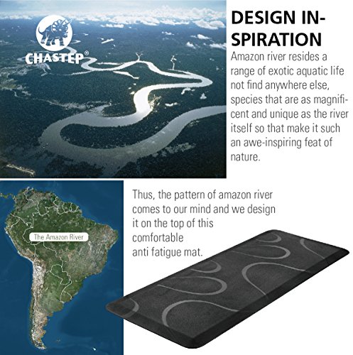 Chastep Original 24in x 60in Non-Slip Anti-Fatigue Comfort Kitchen Floor Mat, Amazon River Design Inspiration, Ergonomically Engineered, Non-Toxic and Waterproof, Black