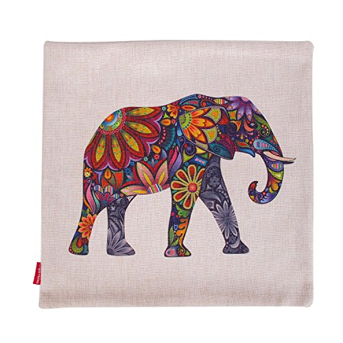 Kingla Home Square Pillowcase Cotton Linen Decorative Throw Pillow Covers 18 X 18 Inch Colorful Cute Elephant Cushion Covers for Sofa