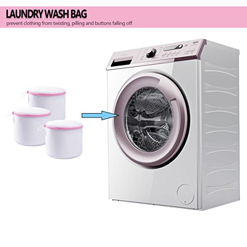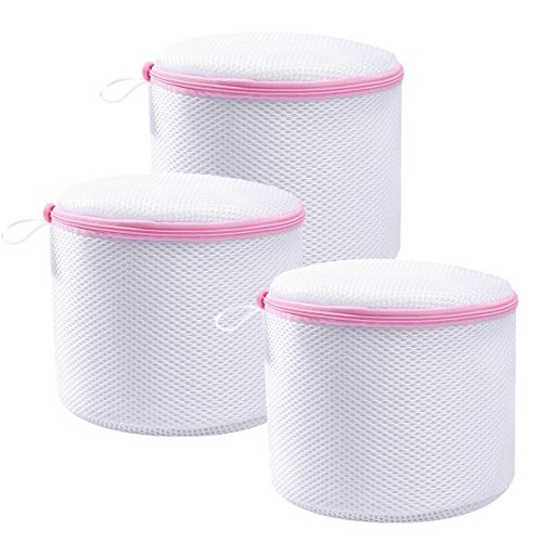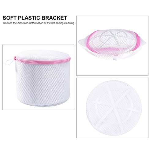 JERUIX Laundry Wash Bag - Premium Zipper & Soft Plastic Bracket Bra Wash Bag Reusable for Lingerie, Hosiery, Stocking, Underwear (3 Packs, White)