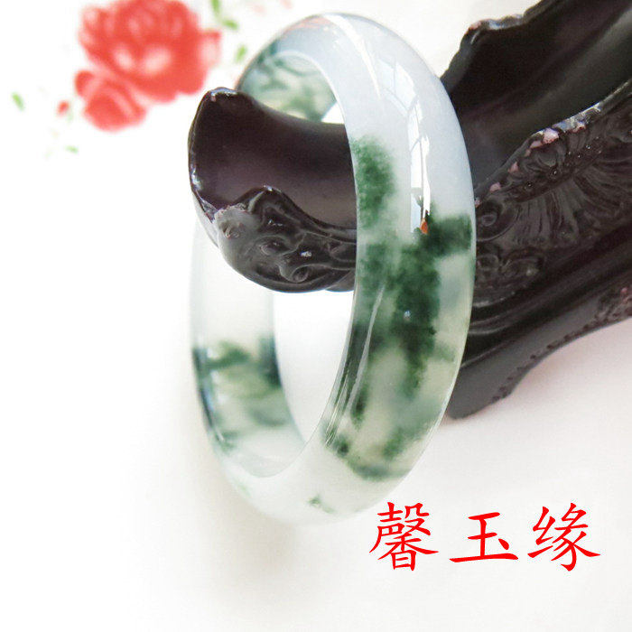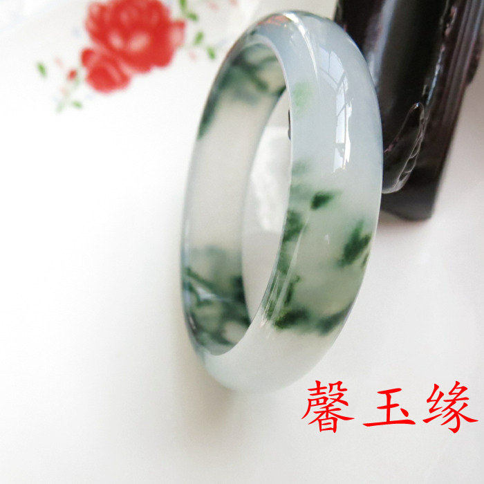 飘花玉手镯 玉镯子 女款翡翠色手镯