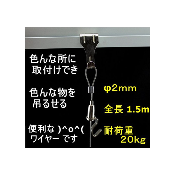 훅 형상 의 자재 금구와 직경 2 mm 길이 1.5 m 의 와이어 가 세트 가 되었 조인하(하락) 금구 입니다.
