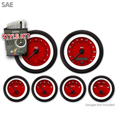 Studio : Aurora Instruments Publisher : Aurora Instruments Binding : Automotive Product Description Style Kit - SAE Tribal Red, Black Modern Needles, Black Trim Rings Aurora Style Kits lets you transform the look of your Aurora Gauges with ease. Each gauge style kit includes gauge faces, needles, and trim rings for oil pressure, fuel level, tachometer, speedometer, volt, clock, oil temperature, and turbo boost. Simple, detailed instructions make changing out your Aurora gauge faces, needles, and trim rings a snap - even when the gauges are installed. Choose from thousands of gauge face styles or create you own online. Available in Imperial (SAE) and Metric. Aurora gauges offers the worlds largest selection of gauges and instrumentation for your ride, and are the world's only gauges offering interchangeable gauge faces, trim rings, and needles. Choose from thousands of designs and options, or custom create your own . 0