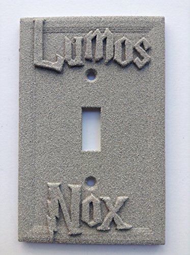 Studio : Sci-Collectables Publisher : Sci-Collectables Binding : Kitchen Product Description Custom made Lumos/Nox Harry Potter Lightswitch Cover. Stone Textured, feels similar to sandstone or Aged Copper in color, genuine patina. Raised/Embossed design. Includes 2 Screws painted to match (6-32 3/4" Ovalhead). Fits all Standard US light switches. It may fit many others, spacing between screw holes, 2-3/8" (6cm). Plate measures 3-1/4"x5". (8.25cmx12.7cm) 0