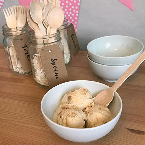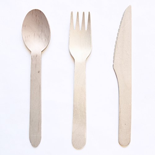 - 300 PIECE SET: Each set includes 100 forks, 100 spoons, and 100 knives. The wooden utensils are strong and sturdy enough for all types of food, from ice cream to steaks.