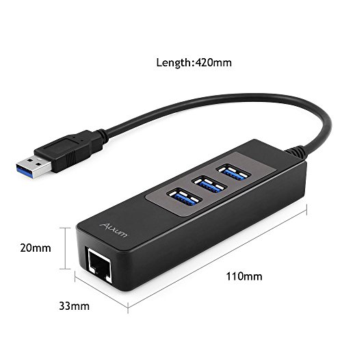 Alxum 3 Ports USB 3.0 Hub with RJ45 10/100/1000 Gigabit Ethernet Adapter Converter LAN Connecter for Apple Macbook Pro Air, Imac, Mac, Chromebook Pixel, Microsoft Surface Pro, Lenovo Yoga
