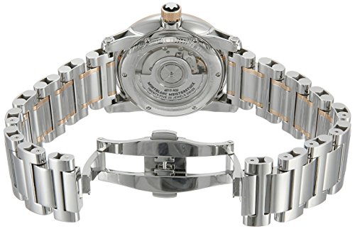 -. Feature : Polished stainless steel case (39 mm diameter, 10 mm thick), sapphire crystal screw-in case-back, 18k rose gold bezel,grey dial, rose gold luminescent hands, rose gold indices and Arabic numerals, sweep seconds hand, date window at the 6 o'clock position / Scratch resistant domed sapphire crystal with anti-reflective coating Swiss automatic movement, caliber mb 24.09, power reserve of 42 hours water resistant to 3 ATM/30 meters/99 feet, polished stainless steel and 18K rose gold bracelet, push button deployment clasp / Swiss-automatic Movement / Case Diameter: 39mm / Water Resistant To 99 Feet