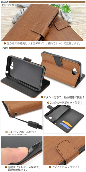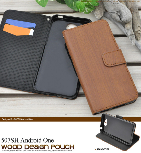 木目調の507SH Android One用スタンドケースポーチ。