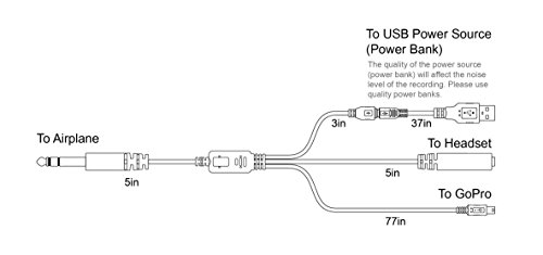Airplane Cockpit Intercom ATC Radio Recording Cable with Power Cable Adapter Audio Cable for GoPro HERO3 / HERO3+ / HERO4 NOT FOR HERO 5