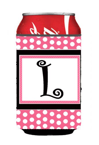Letter L Initial Monogram - Pink Black Polka Dots Can or Bottle Beverage Insulator Hugger