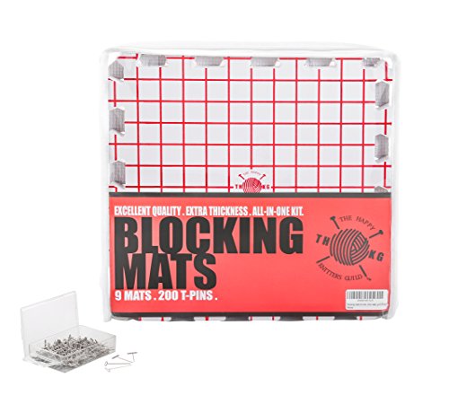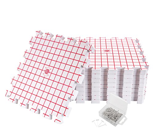 Blocking mats for knitting, set of 9 boards with 200 T-pins and storage bag, extra thick mats, grid design