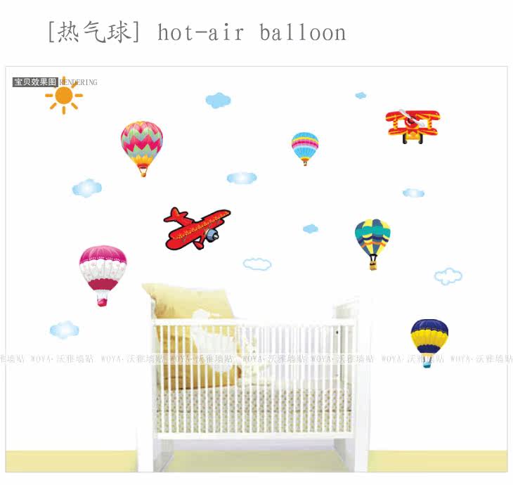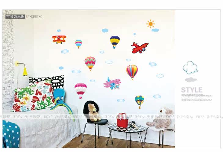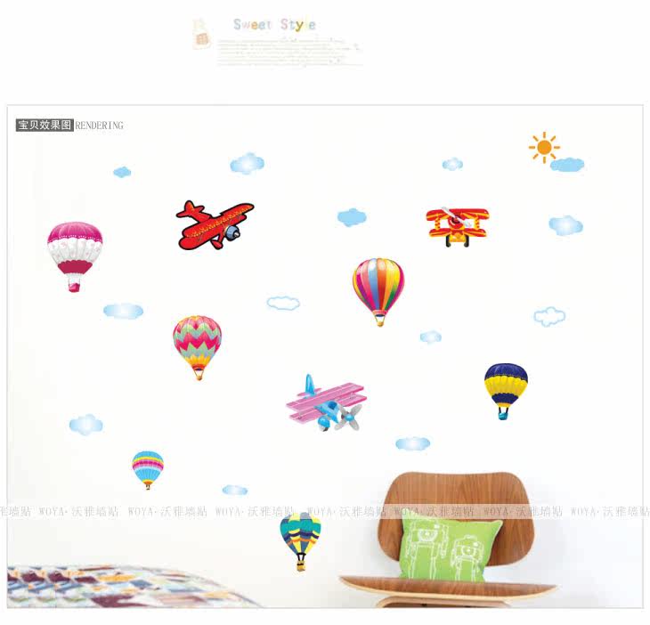 儿童房幼儿园教室装饰卡通背景墙贴画墙贴纸热气球天空