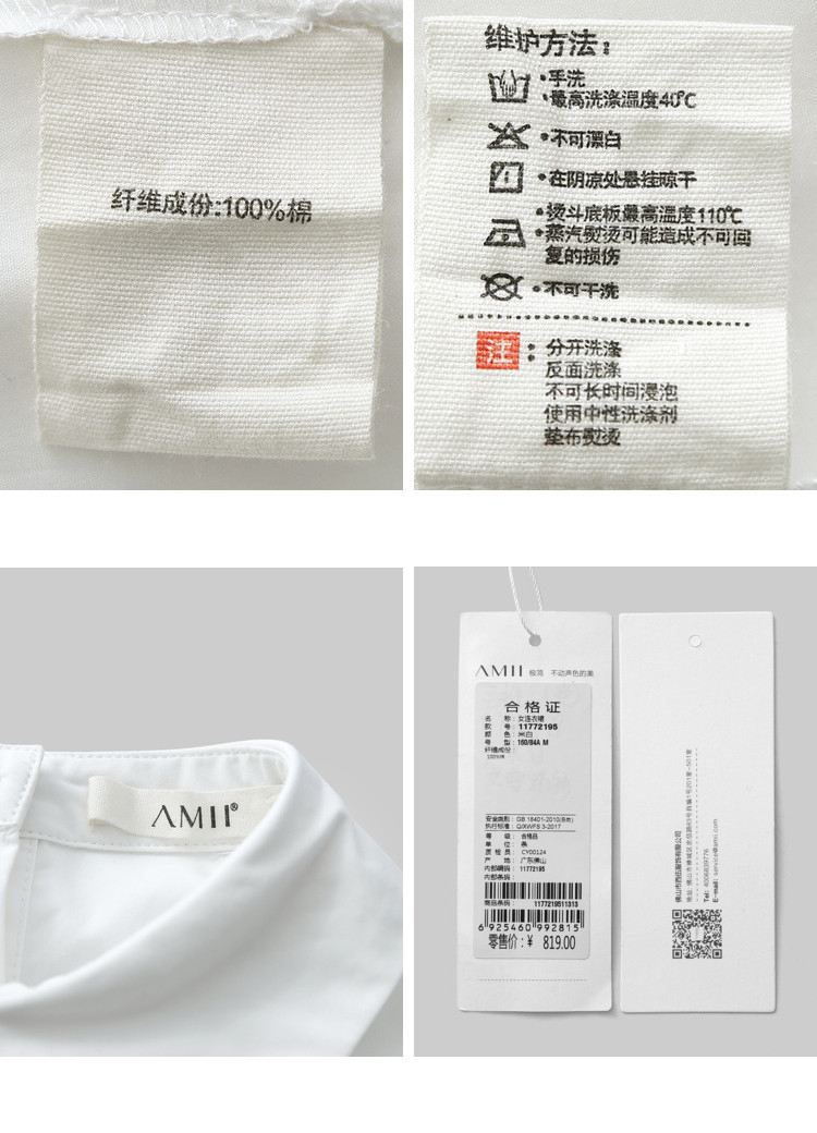 | 洗涤标准: | 不可浸泡不可干洗不可漂白40℃以下手洗悬挂晾干110℃以下垫布熨烫 |