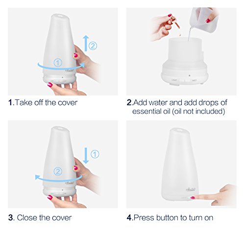 - Super Quiet:Adopted ultrasonic technology, this ultrasonic diffuser is extremely quiet when working. it gives out ultra fine and smooth mist which can soften and moisten dry and chapped skin in winter. it also helps you breathe better when your are sleeping with air conditioner on.