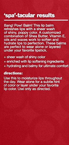 From our spa to your skin you've put your trust in us to care for your skin with our legendary spa services and world famous skin care products. Now we’re excited to introduce the next step to achieving complexion perfection. We like to call it tinted skincare. We’ve poured our innovative spa ingredients and advanced technologies into our tinted skincare products, so you’ll know they’re good for you and your skin. Spatacular results: bang. Pow. Balm. This lip balm refreshes lips with a sheer wash of shiny, poppy color. A customized combination of shea butter, vitamin e, oils and waxes work to soften and hydrate lips to perfection. These balms are perfect to wear alone or layered under your favorite lipstick.Feature