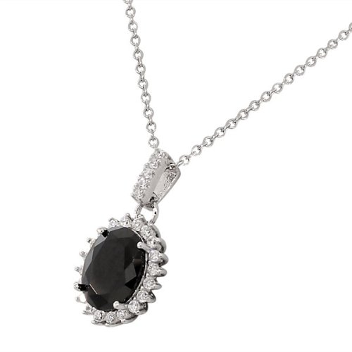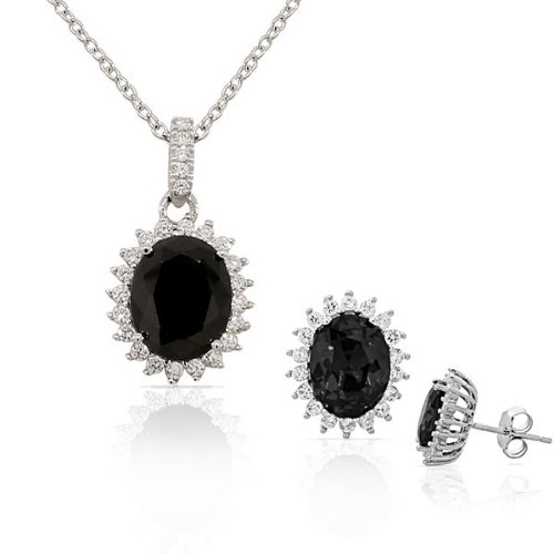 -. Title : 925 Sterling Silver Black White CZ Oval Charm Womens Pendant Necklace Stud Earrings Set