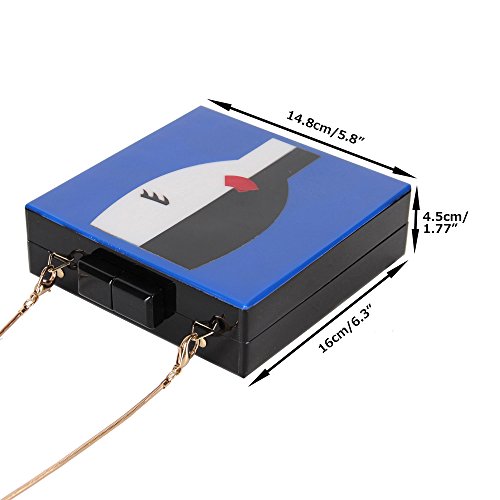 -. Feature : Size: 18*11*4.5CM;Material: High quality acrylic,which is perfect gift for birthday / ELEGANT IN EVERY OCCASION: This evening clutch will give you a movie star glow at weddings or cocktail party. / FINE MATERIAL & CUTE SHAPE: This box clutch purse is made of solid acrylic,with cloth lining and golden turn-lock closure / LARGE CAPACITY: This clutch handbag has rectangular hard body and large inside space which easily carry your sunglasses, lipstick and more, the internal pocket fit for large smart phone like iPhone 6 Plus / EASY CARRY: This shoulder clutch purse is very easy to carry, adjusts, and comes with detachable golden cross-body strap