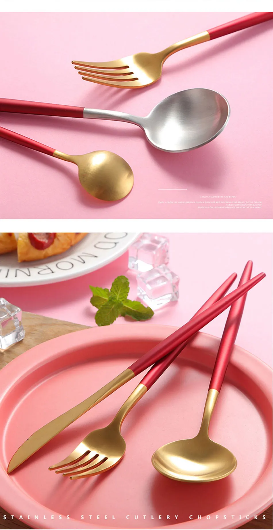 Feature 3:Gold Silver Cutleries Western Food Set