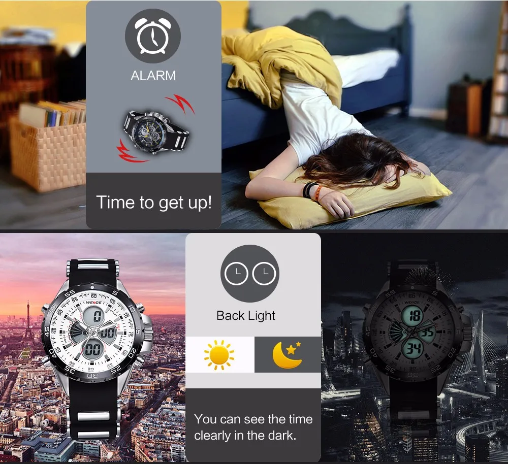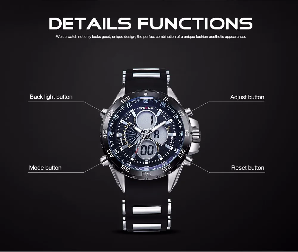 Feature:Auto Date,Water Resistant,Stop Watch,Back Light,Multiple Time Zone,Alarm,Repeater