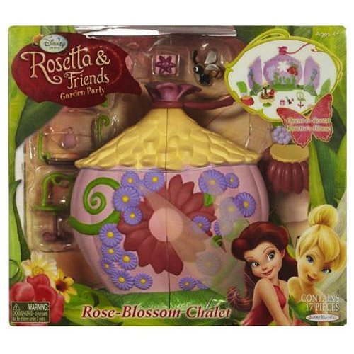 -. Feature : Disney Fairies Rosetta Rose Blossom Chalet Play Set / 1 House, 1 Bee, 2 Chairs 1 Table / 1 Table Cloth, 1 Side Table, 1 Tray, 1 Flower Tea Pot / Vase with Flower, 2 Flower Tea Cups, 2 Leaf Saucers / For ages 3 and up