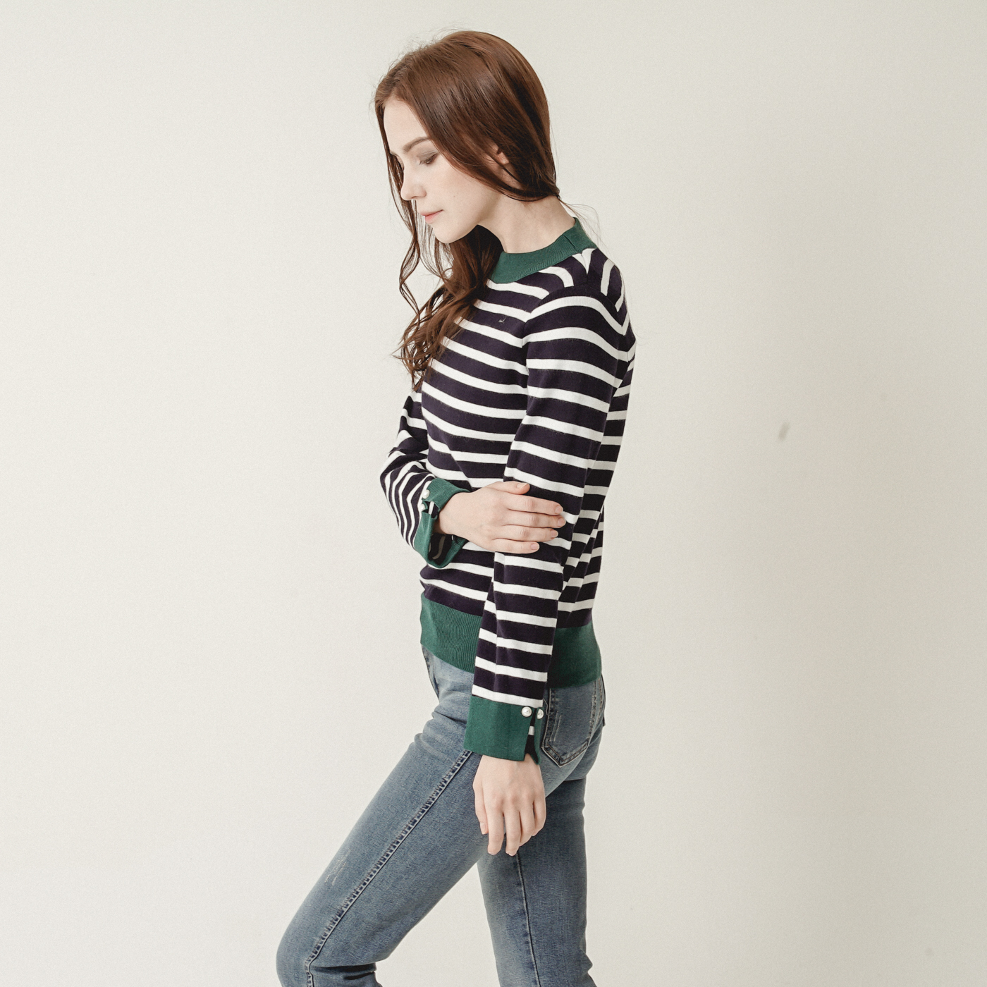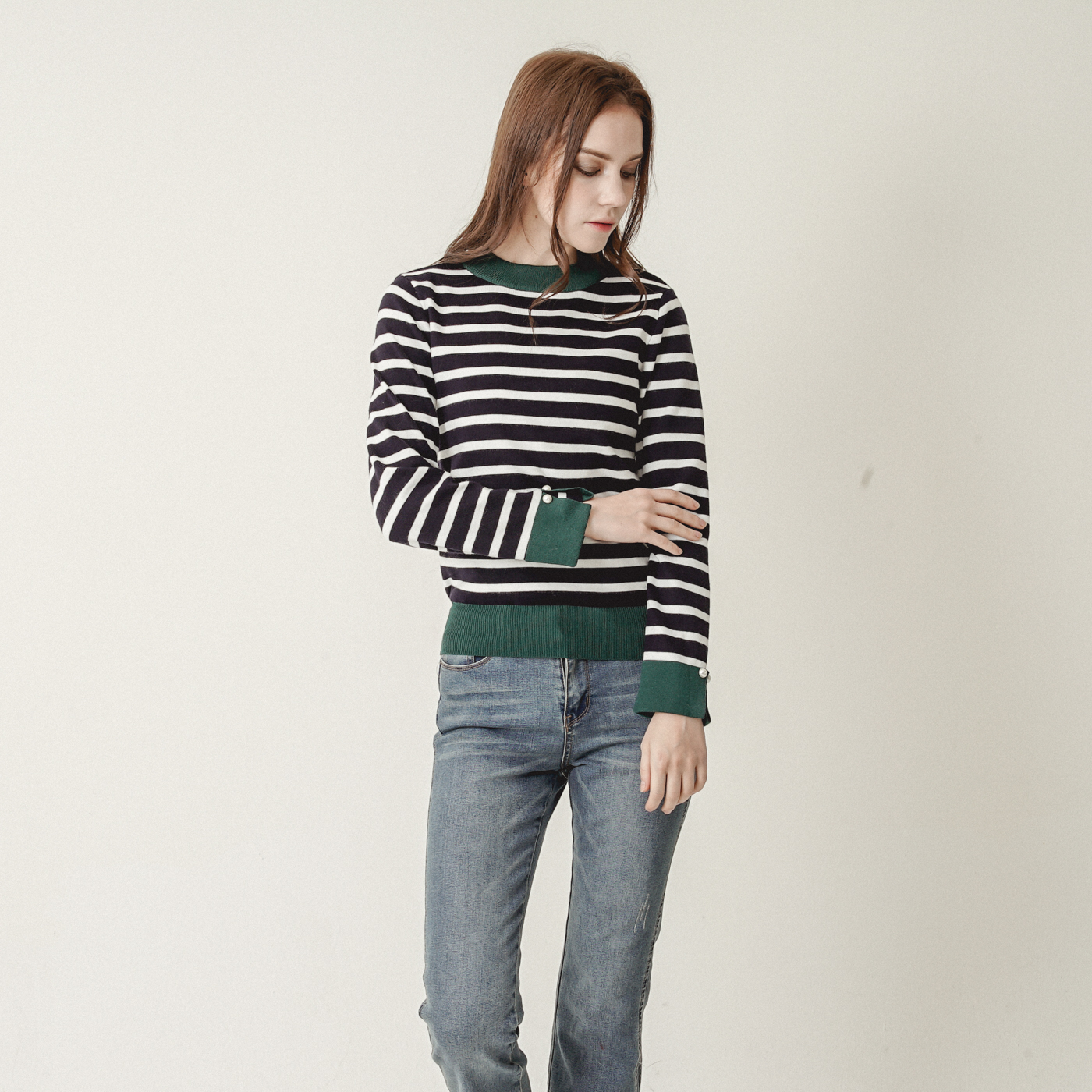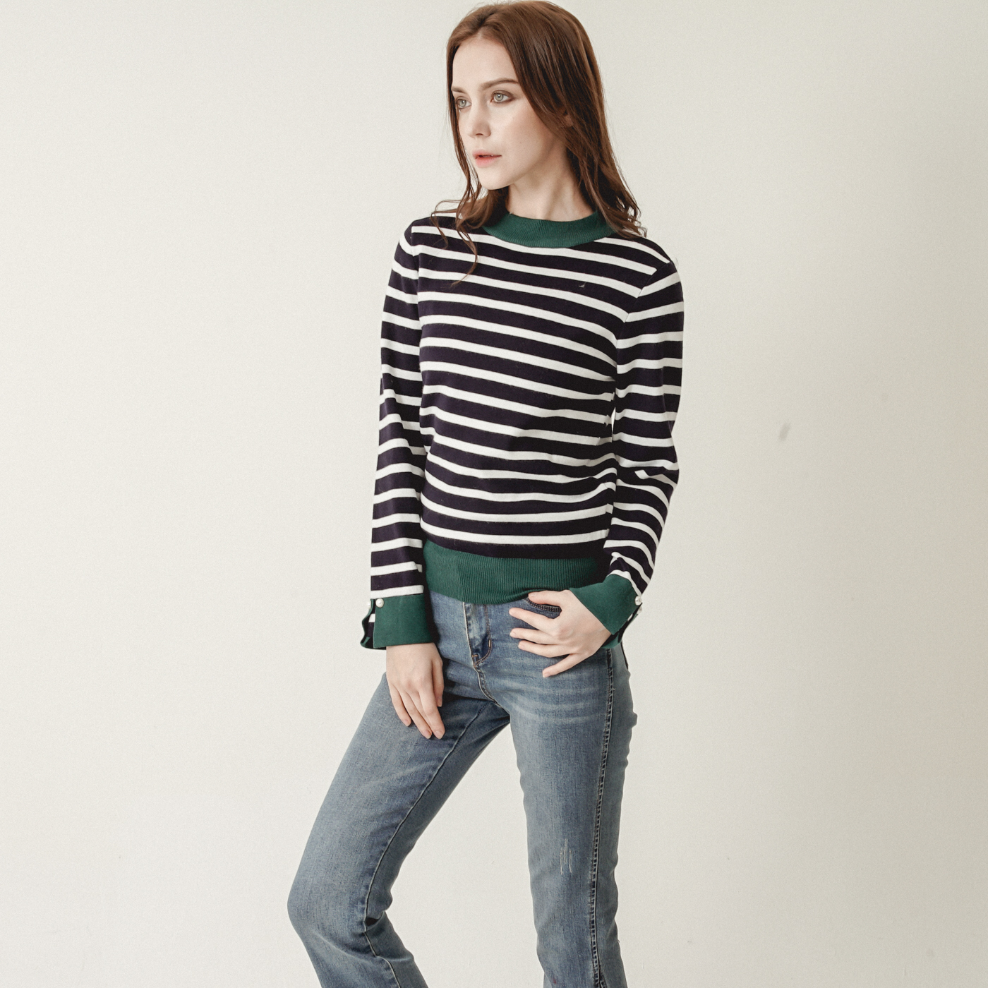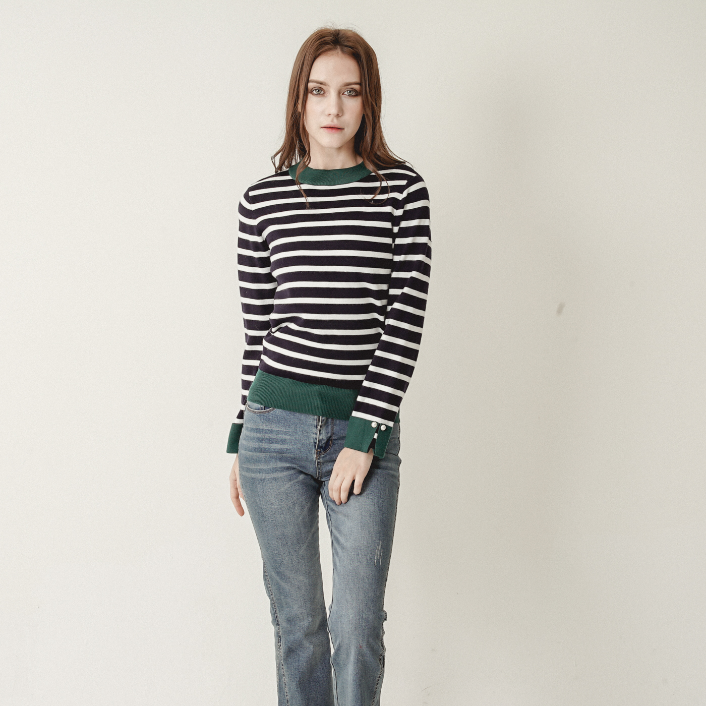 스트라이프와 컬러블록의 캐주얼한 니트탑입니다.