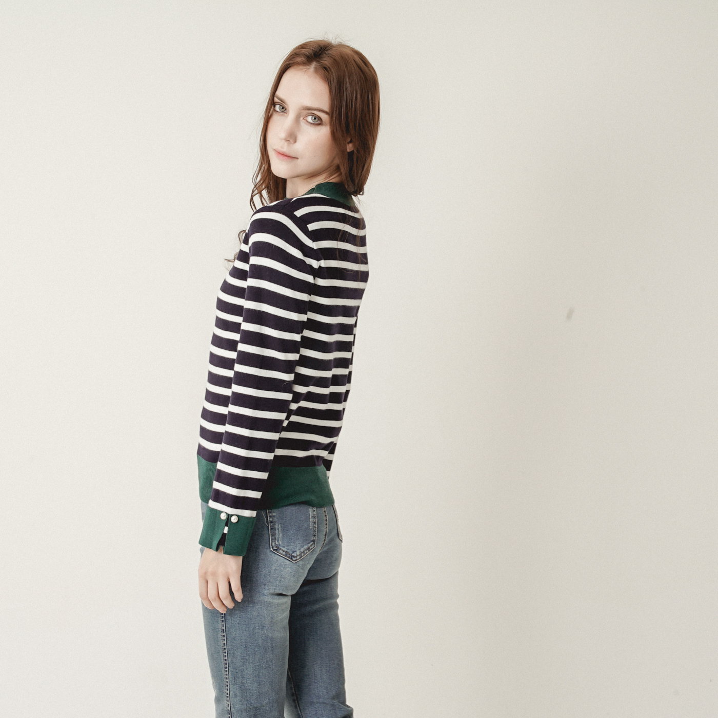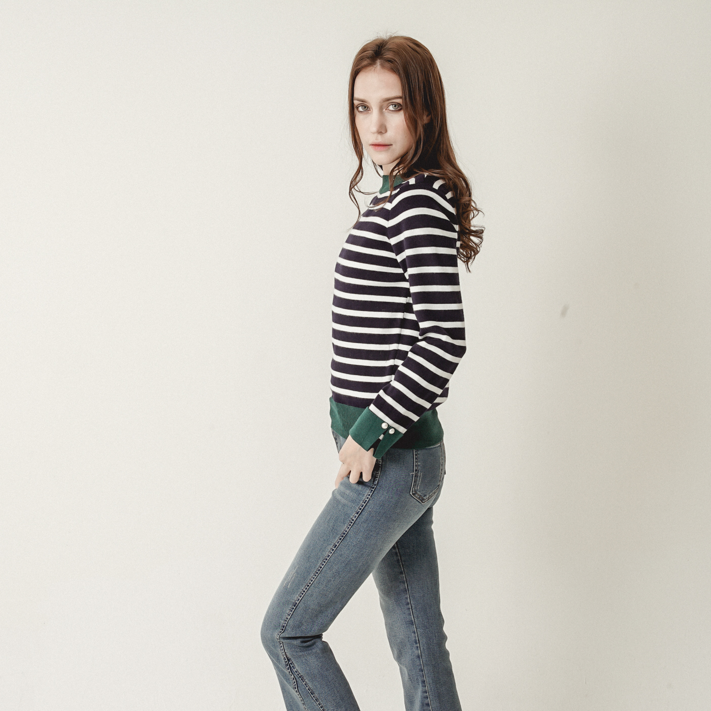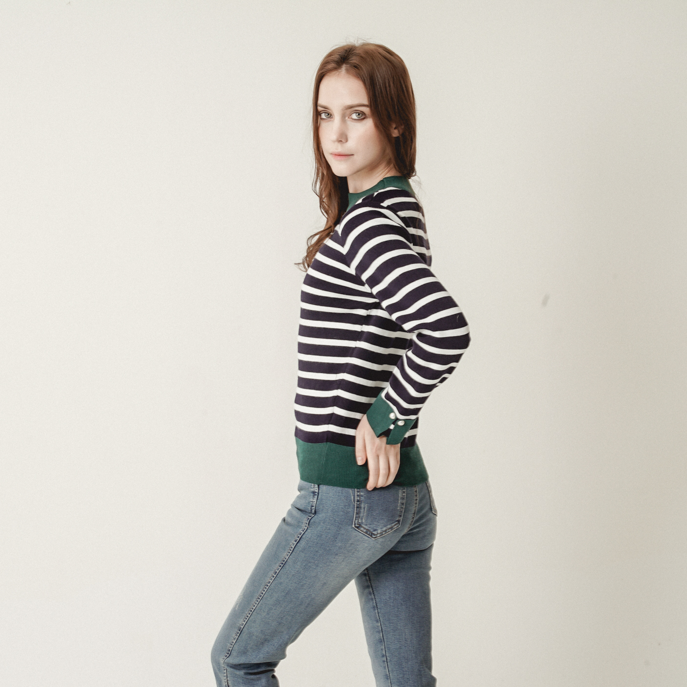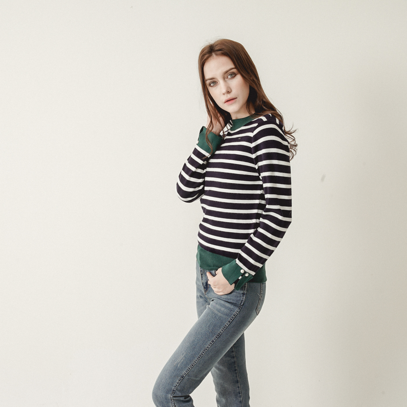 스트라이프와 컬러블록의 캐주얼한 니트탑입니다.