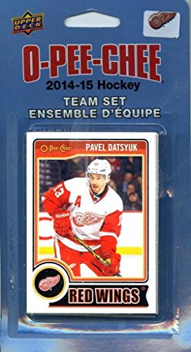 Detroit Red Wings 2014 2015 O Pee Chee NHL Hockey brand new factory sealed 16 card licensed team set made by Upper Deck including Daniel Alfredsson, Pavel Datsyuk, Jonas Gustavsson, David Legwand, Niklas Kronwall, Danny DeKeyser, Jonathan Ericsson, Gustav Nyquist, Johan Franzen, Jim Howard, Brendan Smith, Kyle Quincey, Drew Miller, Tomas Tatar, Henrik Zetterberg and Justin Abdelkader.