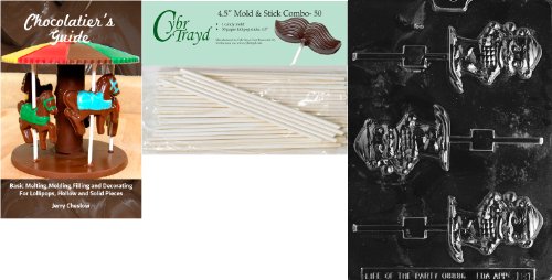 Cybrtrayd 'Skiing Bear Lolly' Christmas Chocolate Candy Mold with 50 4.5-Inch Lollipop Sticks and Chocolatier's Guide