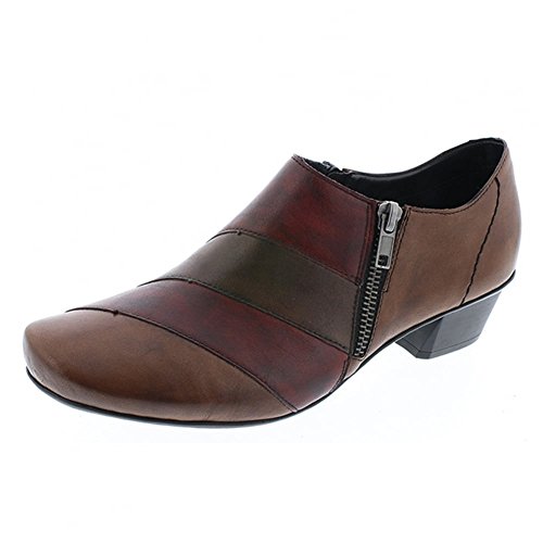 -. Title : Rieker Women's Brown and Red Low Heel Leather Slip On Shoe