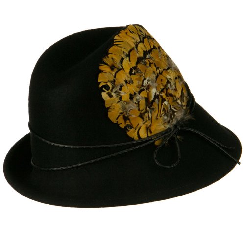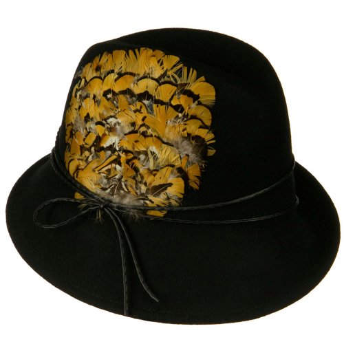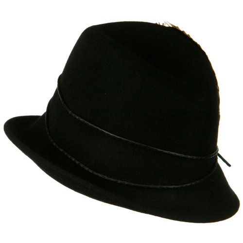 -. Binding : Apparel -. Brand : SS/Sophia -. Department : womens -. Feature : Made of 100% wool felt. / S/M and M/L are available / Crown measures 4 inches deep, with feather and string band. / Brim measures 2 - 3 inches wide, up and down by side. / Soft, thick and warm material. -. ProductGroup : Apparel -. ProductTypeName : HAT -. SKU : fs001cf-black -. Title : Feather and String Band Wool Felt Fedora Hat - Black W18S61F