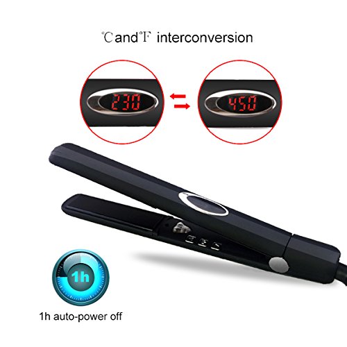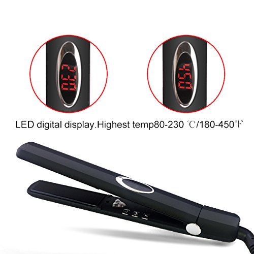 - 450°F Salon High Heat Flat Iron with LED Digital Display: Adjustable temperature from 180°F to 450°F (80°C - 230°C) to suit all hair types. Pressing "+" and "-" to adjust the heat temperatures to match your specific hair type. 130°C - 170°C(265°F - 338°F) for soft, thin, easy to curl hair; 180°C - 200°C(356°F - 392°F) for normal thick, lightly curly hair; 200°C - 230°C(392°F - 450°F) for thick, stiff and coarse hair