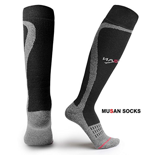 -. Binding : Apparel -. Brand : MUSAN -. Department : womens -. Feature : 【BEST MATERIAL IN THE MARKET】: Highest merino wool content (55%).This is the most scientific proportion of ski socks. The high performance ski socks are made to last over many ski seasons. / 【SPECIAL THICKNESS DESIGN】: Optimal thickness. We design the optimal thickness of socks to allow the ski socks to fit comfortably in ski boots with lightweight. / 【ADVANCED WARM SYSTEM】: Advanced special yarns absorb natural body heat to provide enhanced thermal properties and superior warmth. Knee-high cushioned ski socks with stay-put knee, heel, toe, and shin. / 【HEALTHY MANAGEMENT】: MUSAN ski socks have moisture management & Anti-odor function.Superior wicking property can keep your feet dry to ensure the socks don't get heavy with perspiration or wet from snow while skiing. / 【MUSAN's LOVE】: Advanced technology and exclusive materials create the best quality of socks for your family.It is also suitable for the Old and Young people to keep warm in cold winter.Perfect GIFTS for CHRISTMAS! -. IsAdultProduct : 0 -. Model : WZ17-01 -. ProductGroup : Apparel -. ProductTypeName : SOCKSHOSIERY -. Title : MUSAN Wool Ski Socks ,Extra Warm Knee High Performance Snow Skiing /Snowboard Socks in Outdoor,Fit for Men and Women