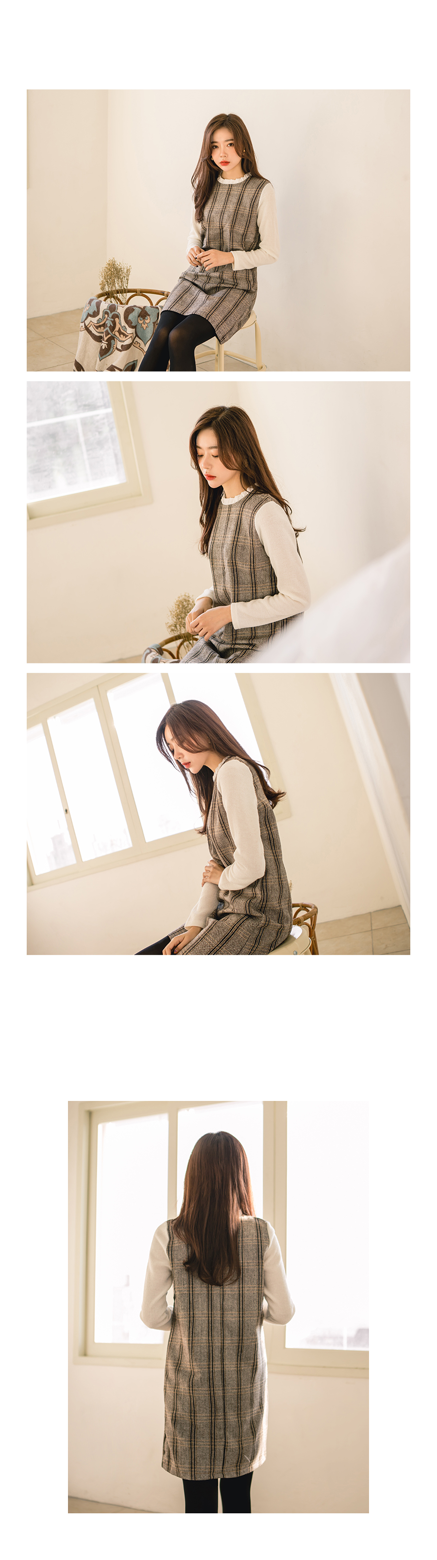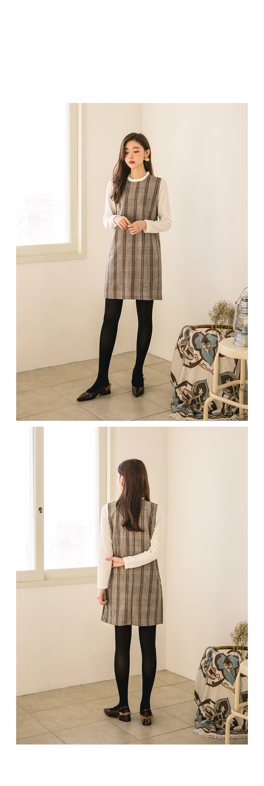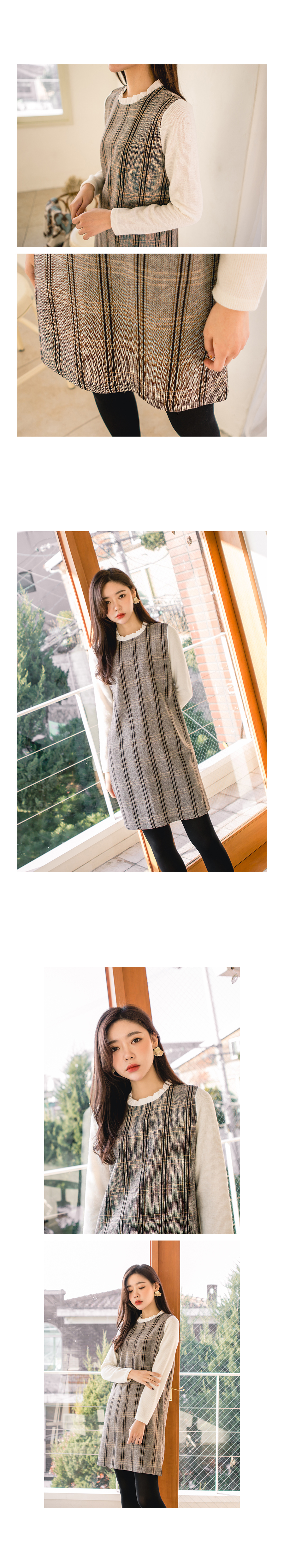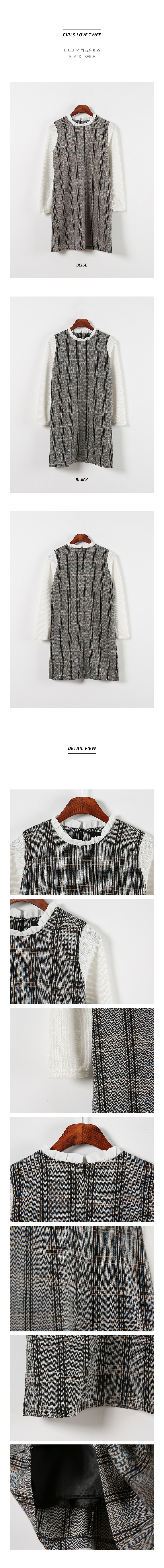 잔잔한 체크패턴으로 고급스럽고 네크라인에는 프릴배색으로