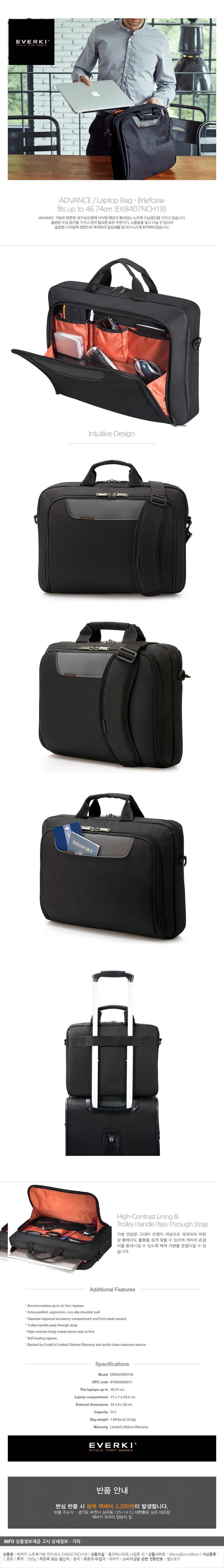 <상품명 : ZP8 에버키 노트북가방 어드번스 EKB407NCH18>