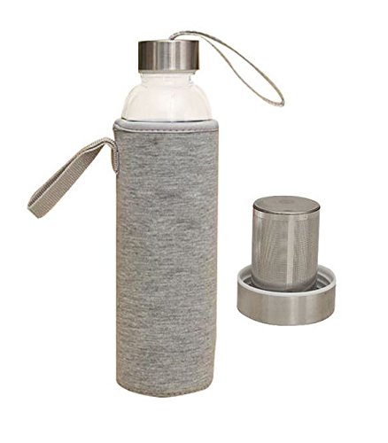 Hot & Cold Brew Travel Bottle Infuser - 20 Oz. Borosilicate Glass Tea Water Bottle with Infuser, Stainless Steel Filter Basket & Insulating Sleeve - Highest Quality - BPA Free (Heather Grey)