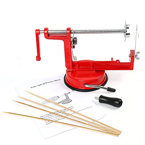 YaeKoo Red Stainless Steel Twisted Potato Apple Slicer Spiral French Fry Cutter