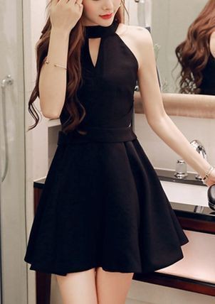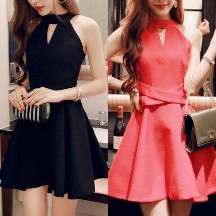 パーティードレス ミニ丈 フレアワンピース クルーネック 肩出し ブラック レッド ウエストベルト 大人 セクシー お呼ばれ drgz2546