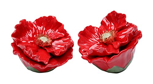 StealStreet SS-CG-20732 2.5" Red Painted Poppy Petal Flowers Salt and Pepper Shaker Set