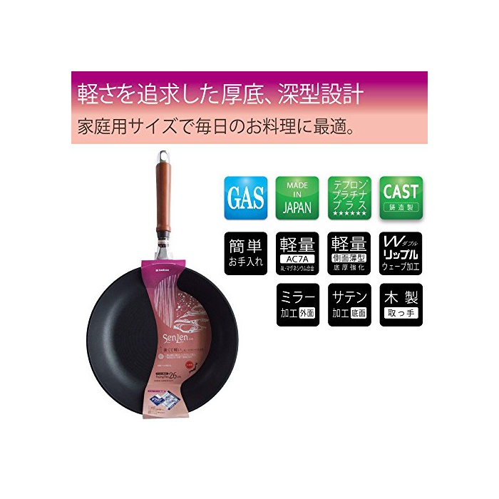 본체:알루미늄 합금(마그네슘 합금)고, 내면:테플론 플라티나(platina) 플러스 가공,겉:밀러 마무리,저면:새틴 마무리,핸들:천연목