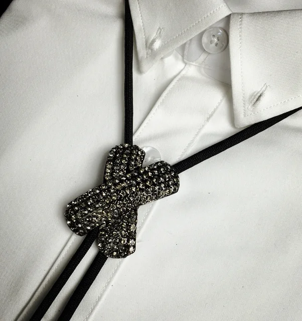 패션 참신 남성 크리스탈 창조적 성격 셔츠 볼로 타이 클래식 캐주얼 웨딩 비즈니스 파티 넥타이 문자 "x" 넥타이