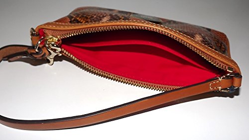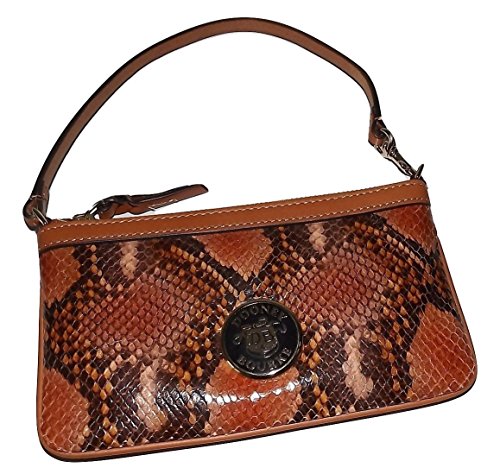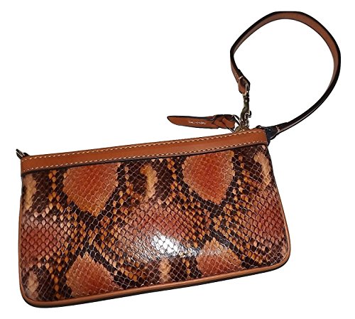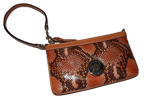 Dooney & Bourke Snakeskin Embossed Leather Large Slim Wristlet Clutch Brown