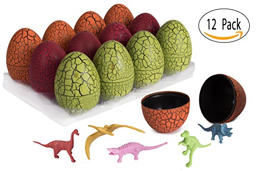 Toyrifiks Pack Of 12 Jurassic Eggs With A Miniature Dinosaur Inside Is The Ideal Prize For Dino Lovers Everywhere. The 2" Inch Eggs Come In Three Different Colors, Each One Containing A Different Dino Figure Inside The Shell. The Egg Opens And Snaps Shut Easily And The Dinosaur Can Be Played With As A Dino Figurine. Use These As Party Favors, Goodie Bag Prizes, Or Handouts At Your Next Party. This Pack Is Great For Easter Egg Hunts As It Will Have The Kids Delighted To Find A Mini Dinosaur Surprise Inside.Feature