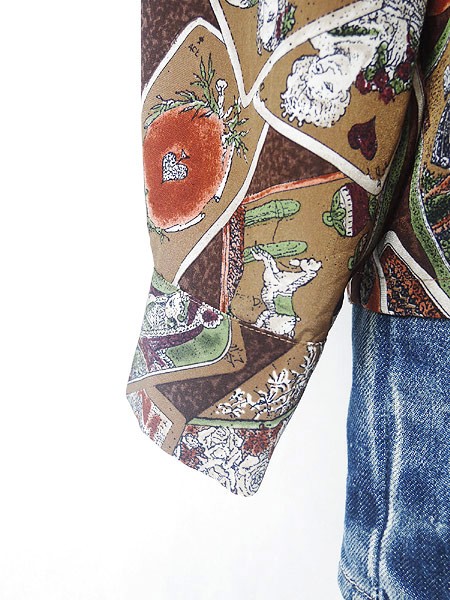 Ladies ブランド- カラー茶ベース メール便不可 コンディション★★★ 素材- 表記サイズ- 実寸サイズ 着丈 69 cm 身幅 60 cm 肩幅 45 cm 袖丈 62 cm ※ウエスト・ヒップ以外は平置き採寸
