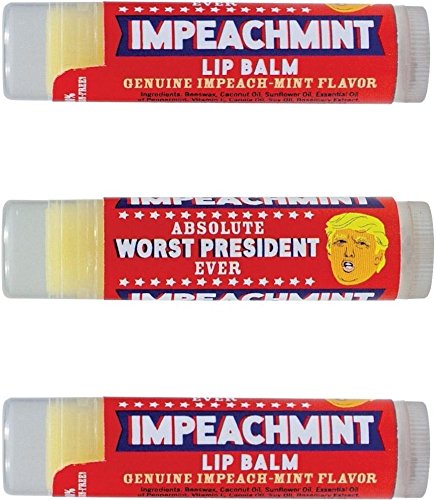 Got that uncomfortable feeling? Is your smile tight and painful? Do your lips purse and pucker Ð even in front of cameras? ItÕs time for IMPEACHMINT! This minty peach flavor lip balm wonÕt let you down! More and more people are asking for the welcome relief of IMPEACHMINT. Demand IMPEACHMINT! Apply liberally. Net Wt .15 oz (4.25 g) Peppermint-flavored.