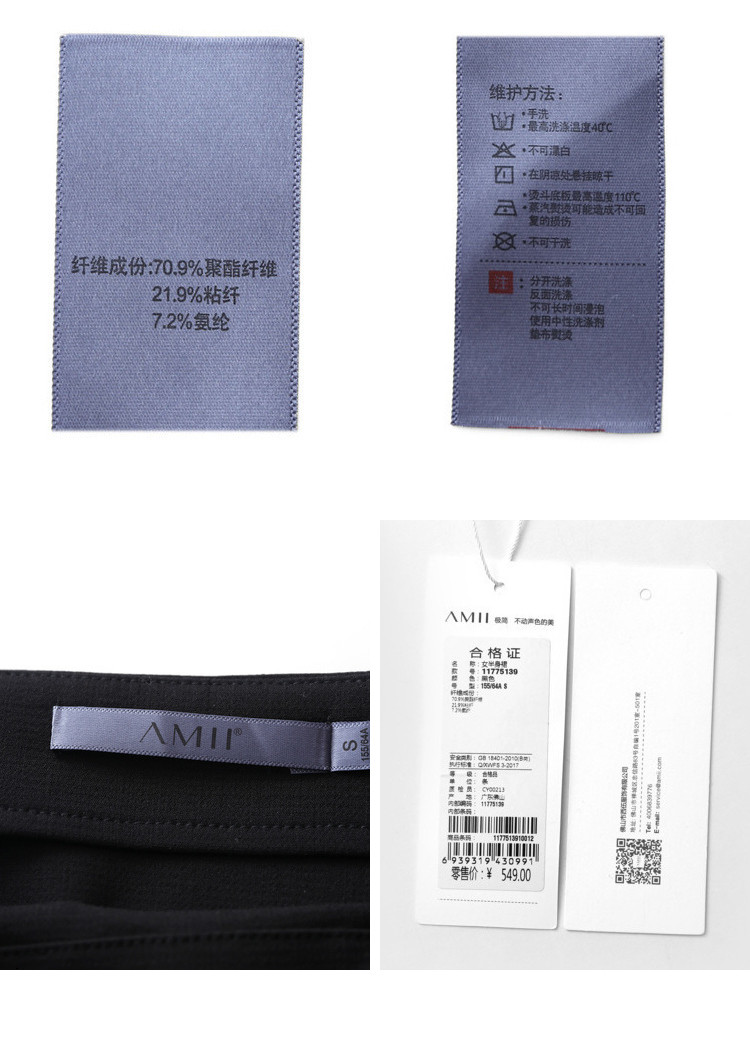 | 面料成分: | 70.9%聚酯纤维、21.9%粘纤、7.2%氨纶 |
